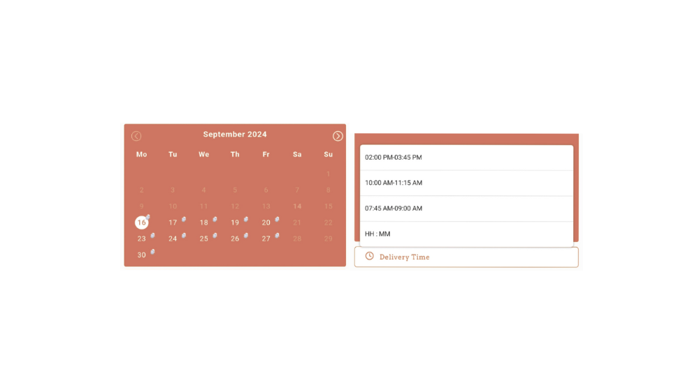From the calendar displayed, please choose your desired delivery/collection date & then pick your preferred timeslot.