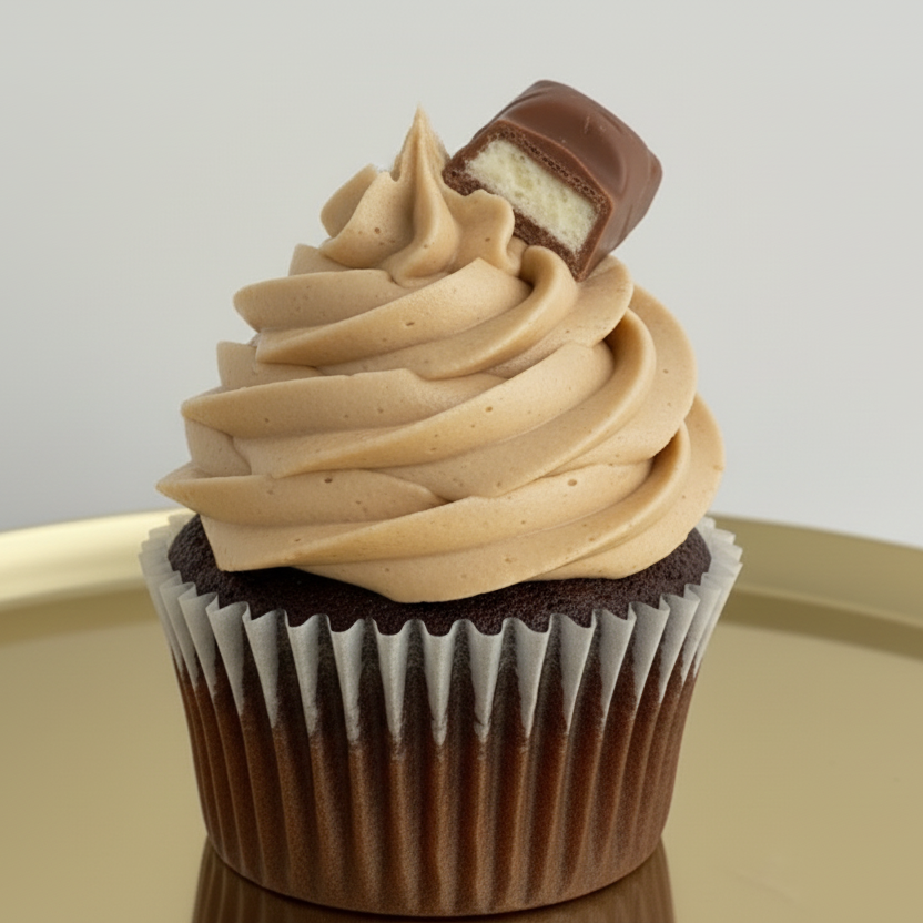 Our Kinder Cupcakes are a chocolate-lover's favourite ' soft chocolate sponge topped with a smooth Kinder-flavoured buttercream swirl and finished with a piece of real Kinder chocolate on top. Light, creamy, and irresistibly nostalgic, they deliver that classic Kinder taste in every bite.